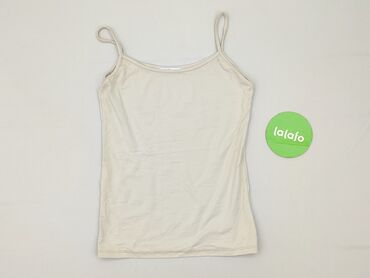 Top damski ZARA Collection – beżowy, z połyskiem - Krój: dopasowany top na cienkich ramiączkach spaghetti - Dekolt: w kształcie litery V z przodu, delikatnie profilowany biust - Materiał: lekka, e...Stan: