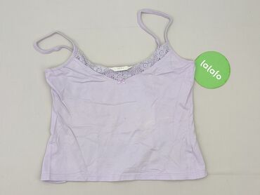 Top damski na ramiączkach, liliowy w białe groszki. - Krój: luźny, z dekoltem w kształcie litery V z przodu i z tyłu - Ramiączka: cienkie, podwójne - Wzór: groszki (polka dots) - Materiał: 100% po...