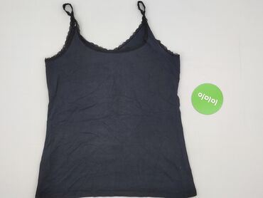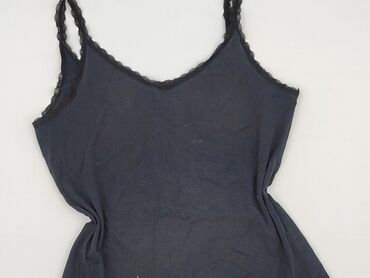 Top damski ORSAY bez rękawów, granatowy. - Fason: dopasowany tank top z okrągłym dekoltem. - Przód i boki pokryte ażurową, misterną koronką/haftem z ozdobnymi brzegami. - Tył z gładkiej, miękkiej ...