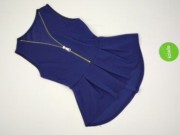 Bluzka damska peplum w kolorze kobaltowym - Krój: dopasowana góra, rozszerzana baskinka (peplum), bez rękawów - Dekolt: okrągły - Zapięcie: długi, metalowy zamek z tyłu - Materiał: strukturalna, e...