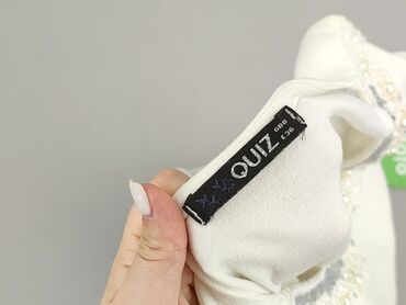 Biała hiszpanka z ozdobnymi perełkami - Krój: bluzka typu hiszpanka, odkryte ramiona - Rękawy: szerokie, falbaniaste 3/4 - Talia: elastyczna gumka, delikatnie marszczona, tworzy peplum u dołu - Oz...