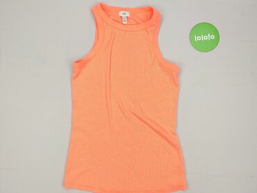 Damski top bez rękawów marki River Island w kolorze koralowym z błyszczącymi drobinkami. Charakteryzuje się asymetrycznym krojem z dłuższym tyłem i rozcięciem po bokach. Okrągły dekolt zapewnia kom...