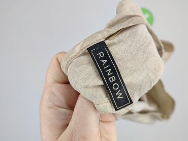 Beżowy top na ramiączkach RAINBOW - Krój: dopasowany, z dekoltem w kształcie litery V, cienkie ramiączka - Materiał: dzianina 70% bawełna, 30% poliester (metka na zdjęciu) - Struktura: prążkowana/...Stan:
