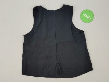 Czarny top bez rękawów dla kobiet - Krój: prosty, lekko pudełkowy; okrągły dekolt - Zapięcie: z tyłu na pętelkę i guzik (małe rozcięcie pod szyją) - Materiał: 100% poliester (metka na zdjęciu) - R...