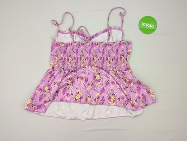 Bluzka damska SHEIN bez rękawów, kolor liliowy (lawendowy). Model z wycięciami i ażurowym, kwiatowym wzorem na całej powierzchni, półtransparentny efekt. Dekolt halter z wąską listwą z przodu, deli...Stan: