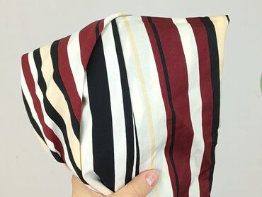 - Wzór: pionowe pasy w kolorach czerni, bieli, beżu/kremu i bordo