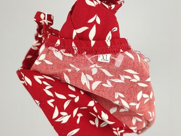 Top krótki SHEIN, rozmiar EU 44 / US 12 (XL) - Kolor: ceglasty/czerwono-rdzawy z żółtym, roślinnym nadrukiem - Krój: crop top bez rękawów, okrągły dekolt - Tył: zapięcie na guzik pod szyją + szero...
