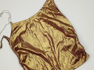 Bluzka bez rękawów SHEIN - Krój: luźny top na ramiączkach, dekolt w kształcie litery V z zakładką - Kolor/print: żółta baza z roślinnym, akwarelowym wzorem w odcieniach granatu, niebieskiego i zie...