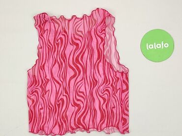Różowy top damski na ramiączkach - Kolor: pudrowy róż - Krój: bez rękawów, okrągły dekolt, lekko zaokrąglony dół - Przód: nietypowe połączenie dwóch faktur – lewa część z ażurową siateczką, prawa ...Stan: