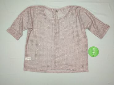 OkrągłyDamski top siateczkowy w jasnoróżowym kolorze. Charakteryzuje się luźnym fasonem i rękawami o długości 3/4. Całość pokryta jest drobnymi, błyszczącymi cekinami, które dodają blasku. Idealny do stworzenia letnich, przewiewnych stylizacji.