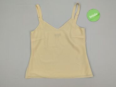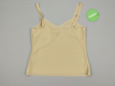 Beżowy top bez rękawów dla kobiet - Krój: prosty, lekko skrócony, szerokie ramiączka, okrągły dekolt - Zapięcie: pętelka z guziczkiem na karku (małe rozcięcie z tyłu) - Rozmiar z metki: EU 40 / ES...