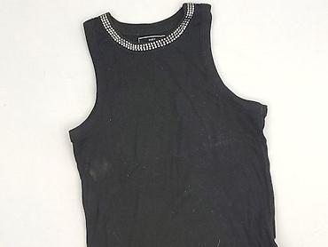 Top damski Sinsay Basic - Model: bezrękawnik/ribbed tank - Kolor: czarny - Rozmiar z metki: S - Dekolt: półokrągły ozdobiony podwójnym pasem drobnych, błyszczących dżetów - Krój: dopasowany, lekko...