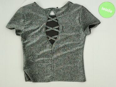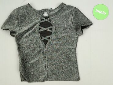 Bluzka damska Sinsay - Model: krótki top z krótkim rękawem - Rozmiar z metki: M - Fason: lekko dopasowany, długość do talii - Dekolt: okrągły - Wzór: geometryczny, gęsty print w odcieniach czerni,...