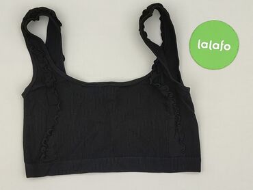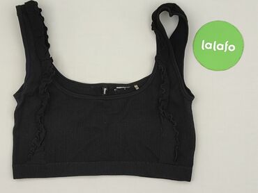Czarny top na ramiączkach Sinsay - Model: krótki top z elastycznym, marszczonym dołem (smocking) i lekko udrapowaną, satynową górą - Kolor: czarny - Ramiączka: cienkie, regulowane - Zapięcie: z bo...Stan: