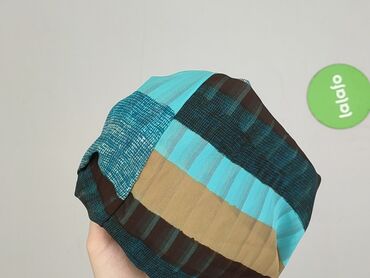 - Wzór: poziome pasy w odcieniach turkusu, niebieskiego, brązu i beżu; mieszanka gładkich i „muśniętych” teksturą pasów