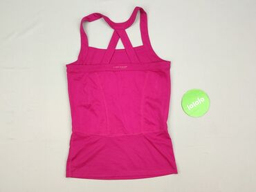 Bez rękawówDamski top sportowy w kolorze fuksji, idealny do aktywności fizycznej. Wykonany z elastycznego materiału, zapewnia komfort i swobodę ruchów. Posiada ramiączka skrzyżowane na plecach, co dodaje mu estetycznego wyglądu i stabilności. Z przodu na wysokości klatki piersiowej znajduje się subtelne, wytłoczone logo. Top jest zaprojektowany tak, aby dopasowywał się do sylwetki, jednocześnie pozwalając skórze oddychać. Doskonały do ćwiczeń na siłowni, jogi czy biegania.Lokalny Rozmiar: MKolor: RóżowyRodzaj dekoltu: OkrągłyStan: IdealnyMateriał: PoliamidWzór: BrakDodatkowe cechy: Oddychający, ElastycznyMateriał dominujący: PoliamidRodzaj: Na ramiączkachRozmiar: MZapięcie: BrakPłeć: KobietaDługość: StandardowaFason: Slim fitMarka: Nieznana
