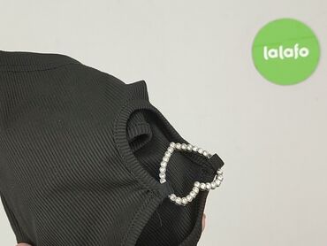 Czarny top typu crop - Krój: krótki, dopasowany, na szerokich ramiączkach, okrągły dekolt - Materiał: prążkowana dzianina – 93% poliester, 7% elastan (rozciąga się i dobrze przylega) - Rozmiar z m...