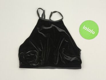 Czarny welurowy top H&M Divided - Marka/linia: H&M Divided - Rozmiar z metki: S (EU S, US S, CA S, MX S) - Fason: krótki top/cropped, prosta linia - Rękaw: krótki - Dekolt: okrągły - Materiał: 100...