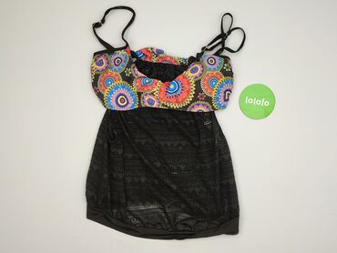 Top damski na ramiączkach typu camisole/tankini. - Krój: lekko rozkloszowany, z zakładką/przeszyciem z przodu podkreślającym talię; wyprofilowana górna część biustu. - Ramiączka: cienkie, regulowa...