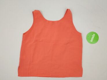 Top damski bez rękawów - Kolor: brzoskwiniowy/łososiowy - Krój: luźny, prosty - Dekolt: w serek z ozdobną wstawką ażurową - Materiał: 100% poliester (metka na zdjęciu) - Rozmiar z metki: D/NL 40, ...Stan: