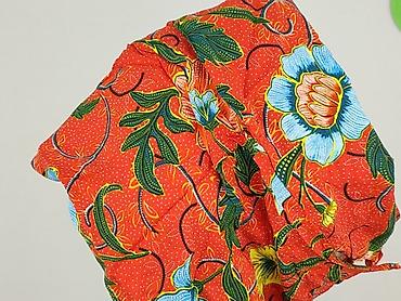 - Intensywnie czerwone tło z dużym, kwiatowym nadrukiem w odcieniach niebieskiego, żółtego, zieleni i pomarańczu