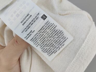 Biała damska bluzka bez rękawów - Krój: luźny, bez rękawów - Dekolt: w kształcie litery V (przód i tył z lekkim przeszyciem modelującym) - Długość: do bioder, lekko zaokrąglony dół - Rozmiar: one ...