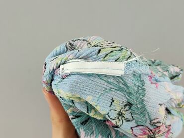 Bluzka damska z krótkim rękawem w tropikalny wzór - Kolor/wzór: intensywny nadruk liści w odcieniach niebieskiego z akcentami bieli i różu - Krój: luźny, z marszczeniem i wiązaniem przy dekolcie; ...