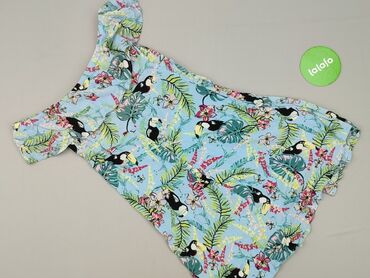 Bluzka damska HOUSE, rozmiar XS. - Fason: hiszpanka z odkrytymi ramionami (cold shoulder) i cienkimi ramiączkami - Krój prosty, lekko luźny, długość do bioder - Wzór: tropikalny – duże kwiaty hibi...