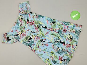 Bluzka damska z krótkim rękawem, w tropikalny wzór - Krój: luźny, komfortowy; lekko dłuższy tył - Dekolt: okrągły z małym wycięciem/szczeliną z tyłu - Rękawy: krótkie, lekko podwinięte - Wzór: kwi...Stan: