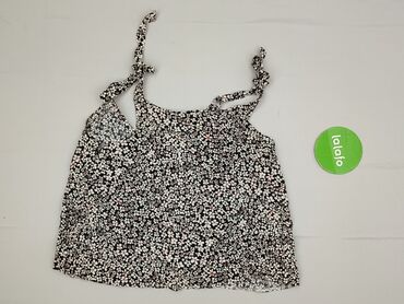 Czarny top damski z wiskozy, zdobiony wzorem w białe stokrotki z czerwonymi środkami, z wiązanymi ramiączkami. Dekolt w kształcie litery V, zapięcie na guziki. Lekki i przewiewny materiał sprawia, ...