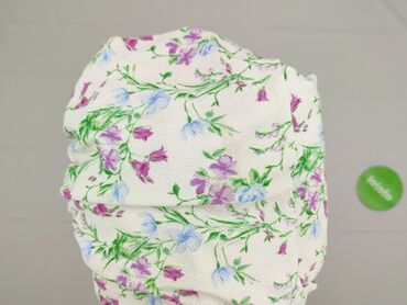 Bluzka damska w kwiaty, rozmiar M. - Fason: bez rękawów, z romantyczną falbaną przy dekolcie i na ramionach - Dekolt: kopertowy/V - Zapięcie: z przodu na guziki - Dół: lekko marszczony, elastyczny...