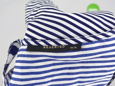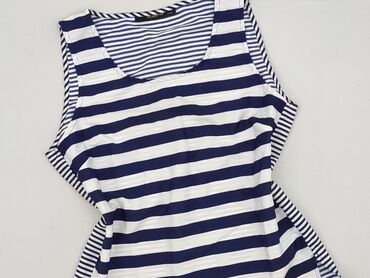 Damska koszulka na ramiączkach (tank top) Reser ved - Krój: bez rękawów, dekolt w kształcie litery U - Zapięcie: krótka listwa z 3 guzikami z przodu - Wzór: poziome paski w kolorach granatowym, bi...Top damski Reserved, rozmiar 36.