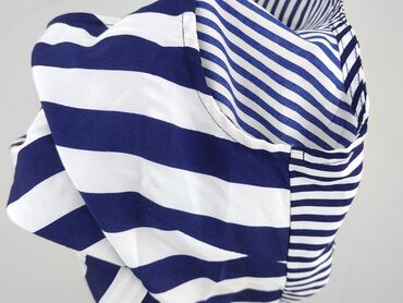 - Wzór: marynarskie pasy – przód w szersze granatowo‑białe paski, tył w drobniejsze paski