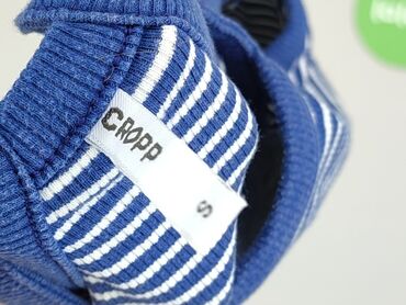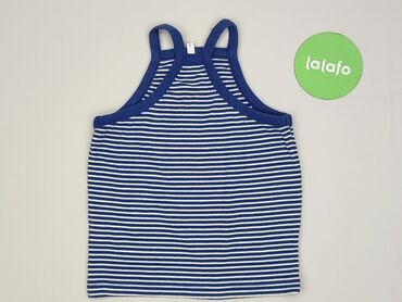 Bluzka w paski damska - Krój: krótki top (crop), dopasowany - Dekolt: bardzo głęboki, zaokrąglony - Rękaw: krótki - Wzór: poziome paski w kolorze niebieskim i białym - Rozmiar z metki: S - Skład m...