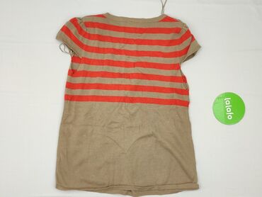 Krótki rękawDamski top w paski marki Camaïeu, charakteryzujący się okrągłym dekoltem i krótkimi rękawami. Górna część topu ma pomarańczowo-brązowe paski, natomiast dolna część jest jednolita. Z przodu znajdują się dwa ozdobne guziki, dodające uroku. Idealny do codziennych stylizacji.