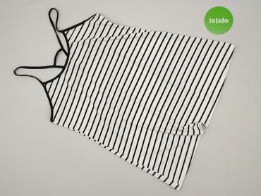 Damska koszulka na ramiączkach - Kolor: biały w czarne, poziome paski - Fason: dopasowany top na szerokich ramiączkach, okrągły dekolt z przodu; z tyłu małe wycięcie-łezka - Detale: czarne koronko...Stan: