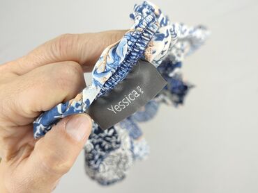Krótki rękawDamski top marki Yessica o fasonie inspirowanym stylem patchworkowym, zróżnicowanymi wzorami w odcieniach błękitu, granatu i bieli, urozmaiconymi beżowymi detalami. Krótki rękaw i dekolt typu łódka sprawiają, że bluzka jest idealna na cieplejsze dni i do codziennych stylizacji. Wzory obejmują motywy kwiatowe, geometryczne i roślinne. Top jest lekki i przewiewny, doskonały do noszenia na co dzień.