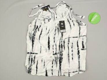 Top damski bez rękawów z wiązaniem na szyi (halter). - Rozmiar: XL (na metce) - Skład materiału: 65% bawełna, 35% poliester - Wzór: ozdobny, orientalny/ paisley - Kolory: ecru/krem z czernią, g...