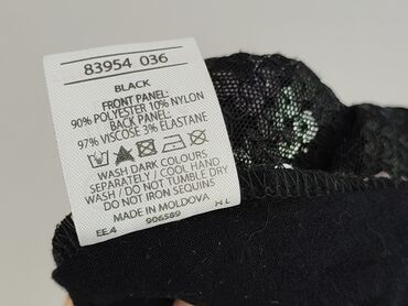 Czarna bluzka damska bez rękawów z cekinami, rozmiar S/M - Fason: dopasowany top bez ramiączek/rękawów, z szerokim elastycznym ściągaczem u dołu - Przód i boki pokryte gęstymi cekinami (małe okrąg...