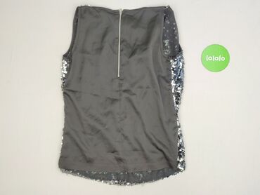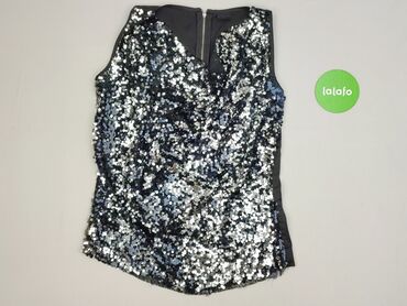 Czarna bluzka damska bez rękawów z cekinami, rozmiar S/M - Fason: dopasowany top bez ramiączek/rękawów, z szerokim elastycznym ściągaczem u dołu - Przód i boki pokryte gęstymi cekinami (małe okrąg...