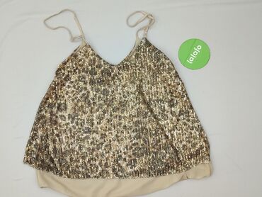 Bluzka bez rękawów F&F, rozmiar EU 40 (UK 12, US 8) - Kolor: jasny beż/nude z połyskiem - Tkanina wierzchnia: 79% poliester, 21% włókno metaliczne – efektowne pionowe pasy z drobnymi cekinami i me...