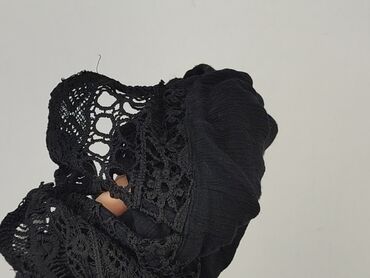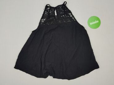 Czarny top na ramiączkach - Krój: luźny, prosty, z delikatnym dekoltem w kształcie litery V z przodu; tył gładki, lekko marszczony u góry. - Ramiączka: wąskie. - Materiał: miękki, ażurowy/koronkow...