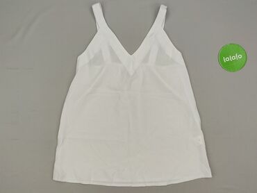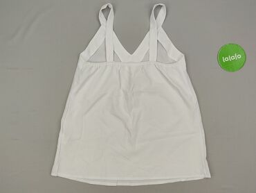 Przedmiotem ogłoszenia jest damski top bez rękawów w kolorze białym. Charakteryzuje się rozkloszowanym dołem i dekoltem w kształcie litery V z tyłu. Idealny na co dzień, na ciepłe dni.