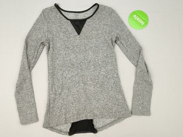 Szary, prążkowany sweter/bluzka z długim rękawem i szerokim dekoltem typu łódka. - Fason dopasowany, elastyczny, miękki w dotyku - Materiał prążkowany, drobna melanżowa faktura w odcieniach szaroś...Stan: