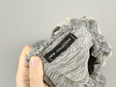 Szara bluzka damska z długim rękawem, CALM & CASUAL, rozmiar L. - Kolor: jasny szary melanż - Fason: luźny, lekko dłuższy tył, okrągły dekolt - Rękaw: długi - Ozdoba: szeroki, czarny pas z koronko...