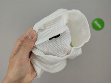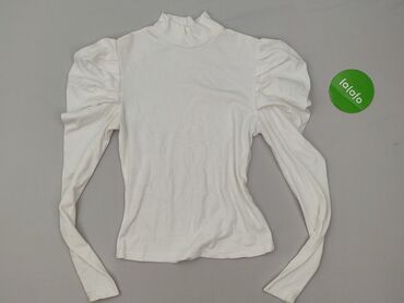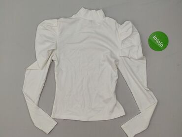 Długi rękawBiały top z długim rękawem i golfem to uniwersalny element garderoby, idealny na wiele okazji. Bufiaste rękawy dodają mu modnego charakteru, a prążkowany materiał zapewnia komfort i dopasowanie do sylwetki. Golf gwarantuje dodatkowe ciepło, co sprawia, że top jest odpowiedni na chłodniejsze dni. Doskonale sprawdzi się jako baza do stylizacji casualowych, jak i bardziej eleganckich zestawów. Można go nosić samodzielnie lub jako element warstwowy pod marynarkę czy sweter. Charakteryzuje się gładkim wzorem i dopasowanym fasonem. Jest to używany produkt w idealnym stanie, odpowiedni dla kobiet.
