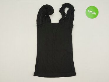Czarna, prążkowana koszulka/top bez rękawów - Fason: dopasowany, elastyczny, bez ramiączek w klasycznym rozumieniu – szerokie „szelki” z efektownym, ząbkowanym wykończeniem - Dekolt: głęboki V z c...