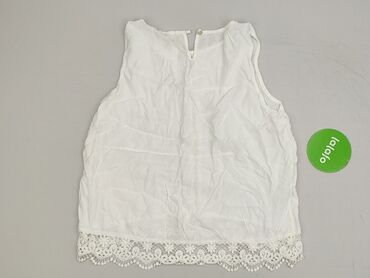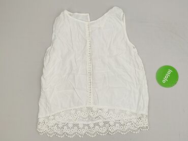 Biała damska bluzka bez rękawów z koronkowymi wstawkami na ramionach. - Krój: lekko dopasowany, dekolt w kształcie litery V z przodu i z tyłu. - Materiał: 100% poliester (informacja z metki). - ...
