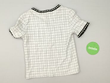 ZARA Trafaluc – damski t-shirt - Model: krótki top z krótkim rękawem - Wzór: czarno‑białe, poziome pasy z drobnymi kropkami/rombami - Fason: lekko skrócony (cropped), okrągły dekolt - Materiał: el...