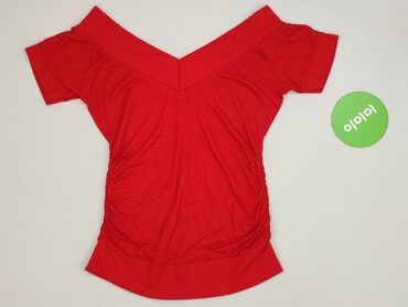 Czerwona bluzka damska z dekoltem w kształcie litery V - Krój: dopasowany, krótki rękaw, głęboki dekolt V z przodu i z tyłu - Kolor: intensywna czerwień - Materiał: cienka, miękka dzianina (przyje...
